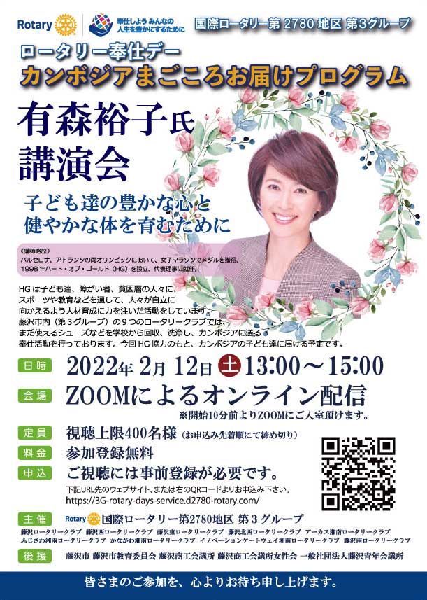 今年度(2021年7月1日~2022年6月30日)国際ロータリー第2780地区(神奈川県内の横浜川崎以外の地区)におきまして、田島透ガバナーは地区内の10のグループそれぞれが一丸となり人道的奉仕(戦争防止と平和、疾病予防、水と衛生、母子の健康、 基礎的教育の充実、地域経済の発展、環英保護)に関連した奉仕を実施するよう提唱しております。